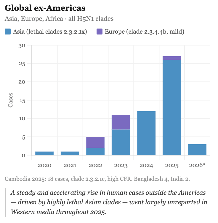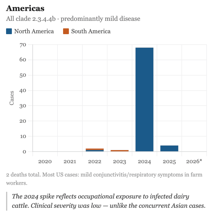 Human H5N1 cases by region and monthOur World in Data / WHO Global Influenza Programme